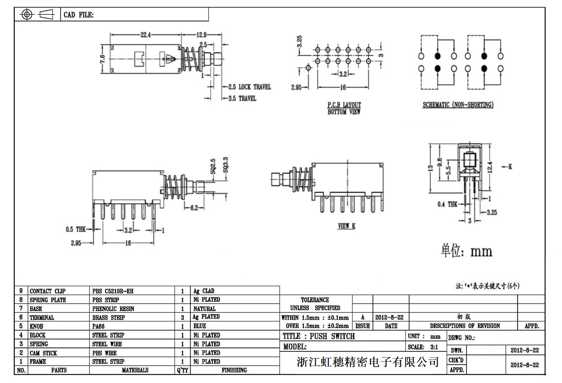 7. 操作力 : 160gf  可訂做