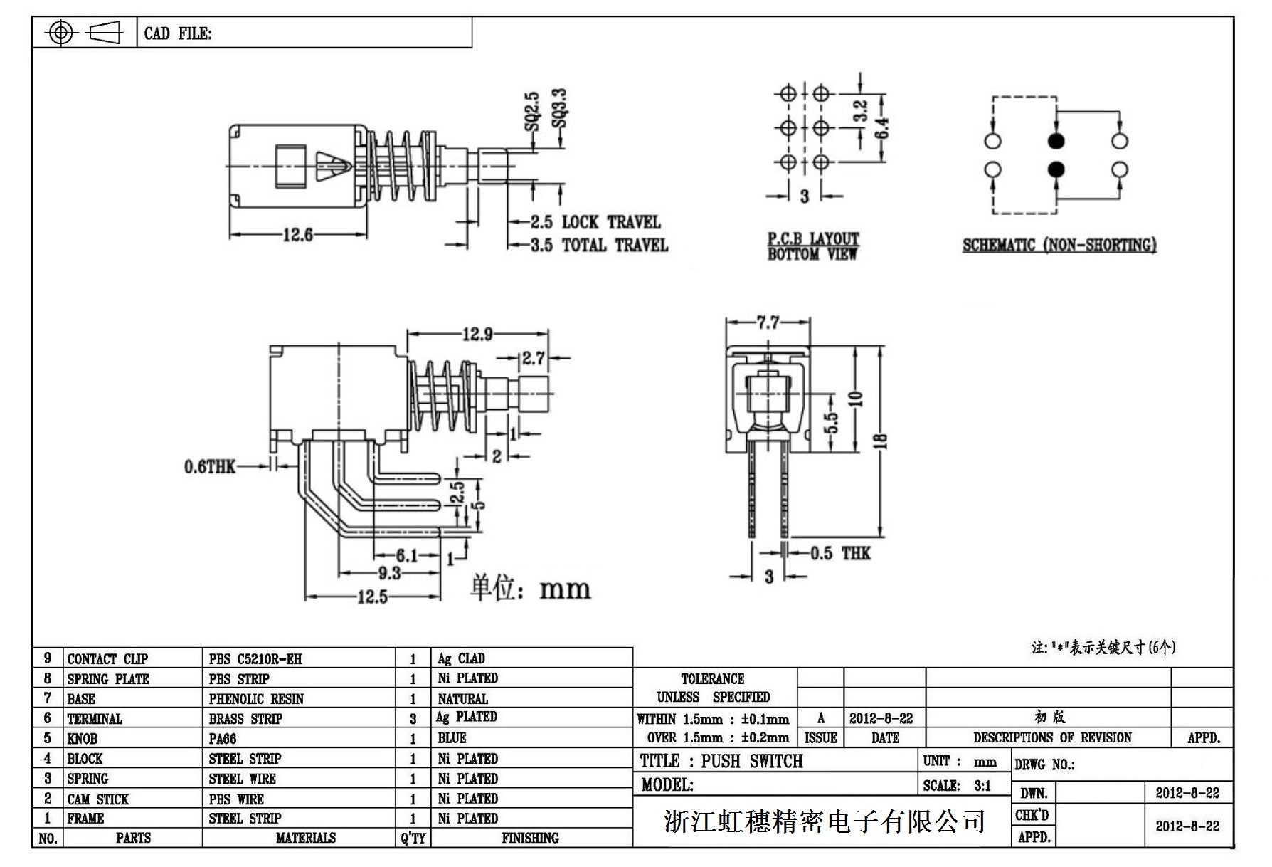 側按直鍵開關技術指標