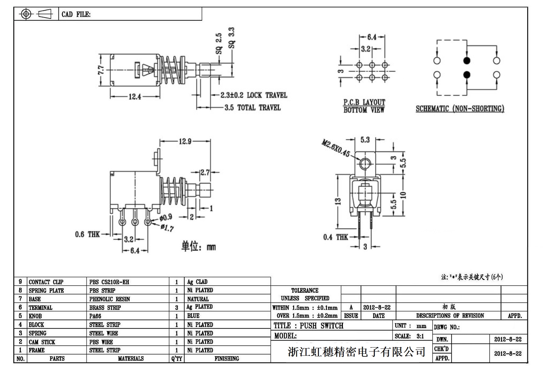 側按直鍵開關技術指標