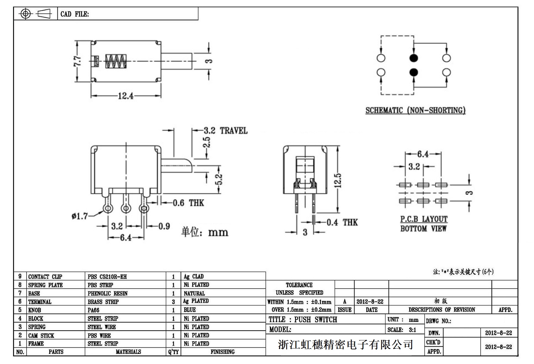 側按直鍵開關技術指標