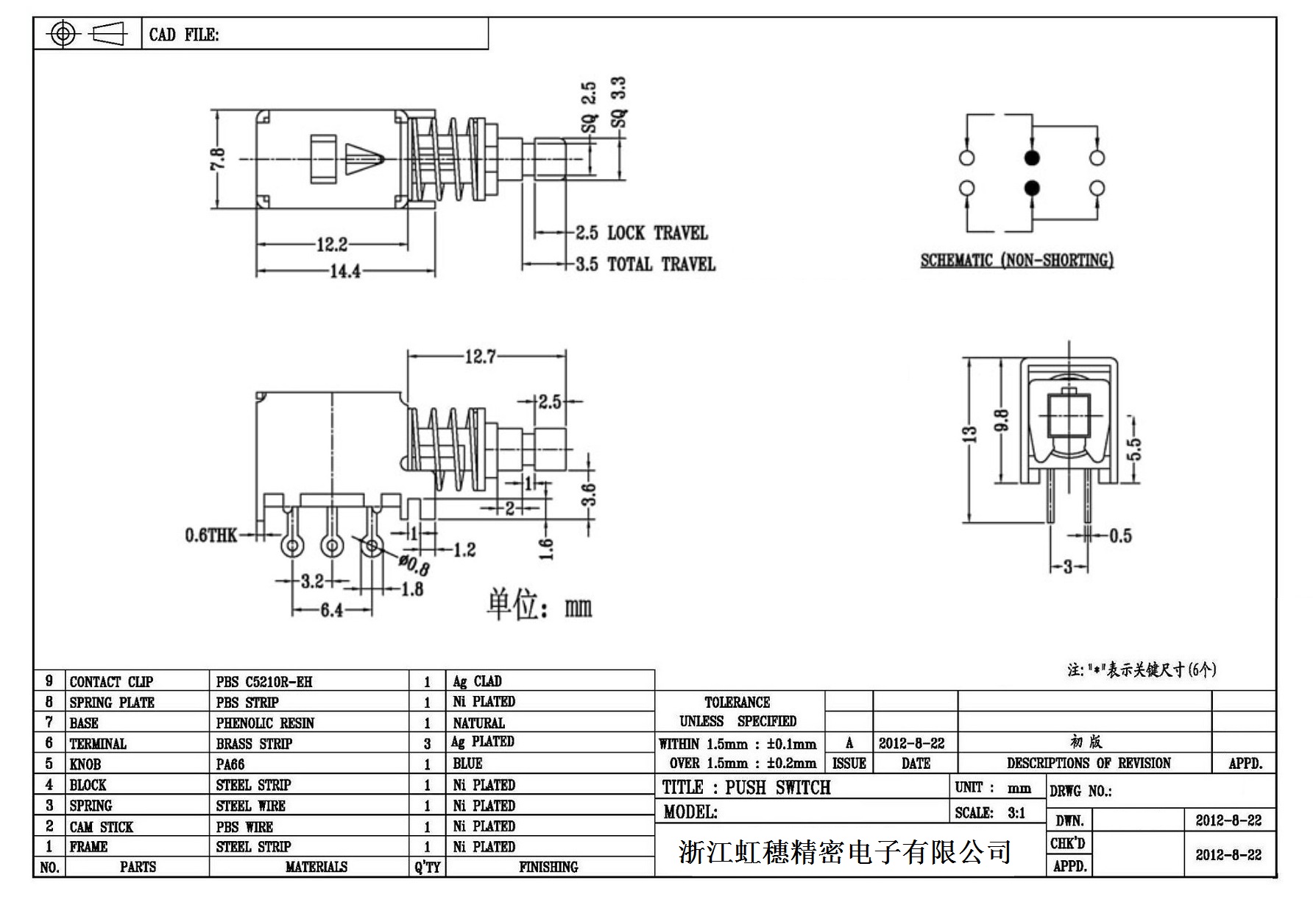 3. 絕緣阻抗: ≥100mΩ DC500V
