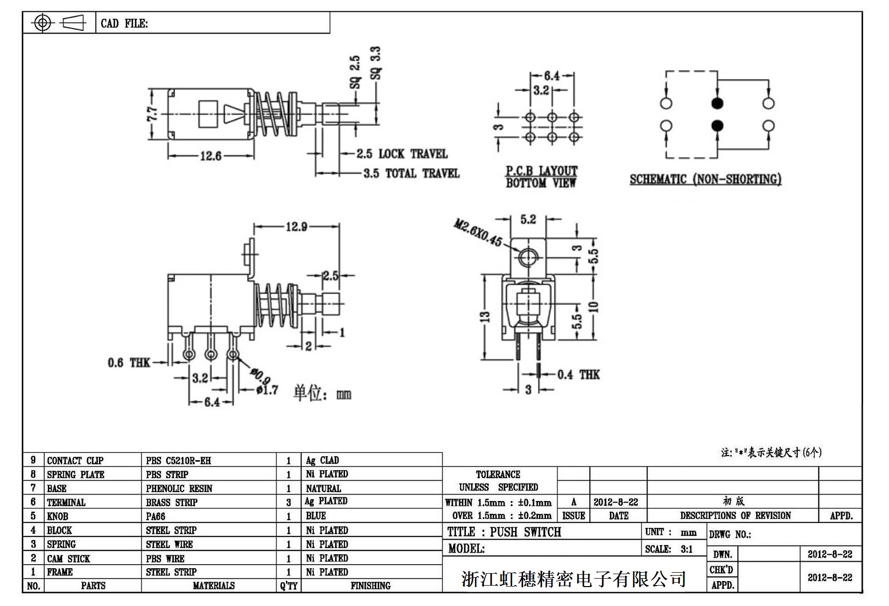 3. 絕緣阻抗: ≥100mΩ DC500V