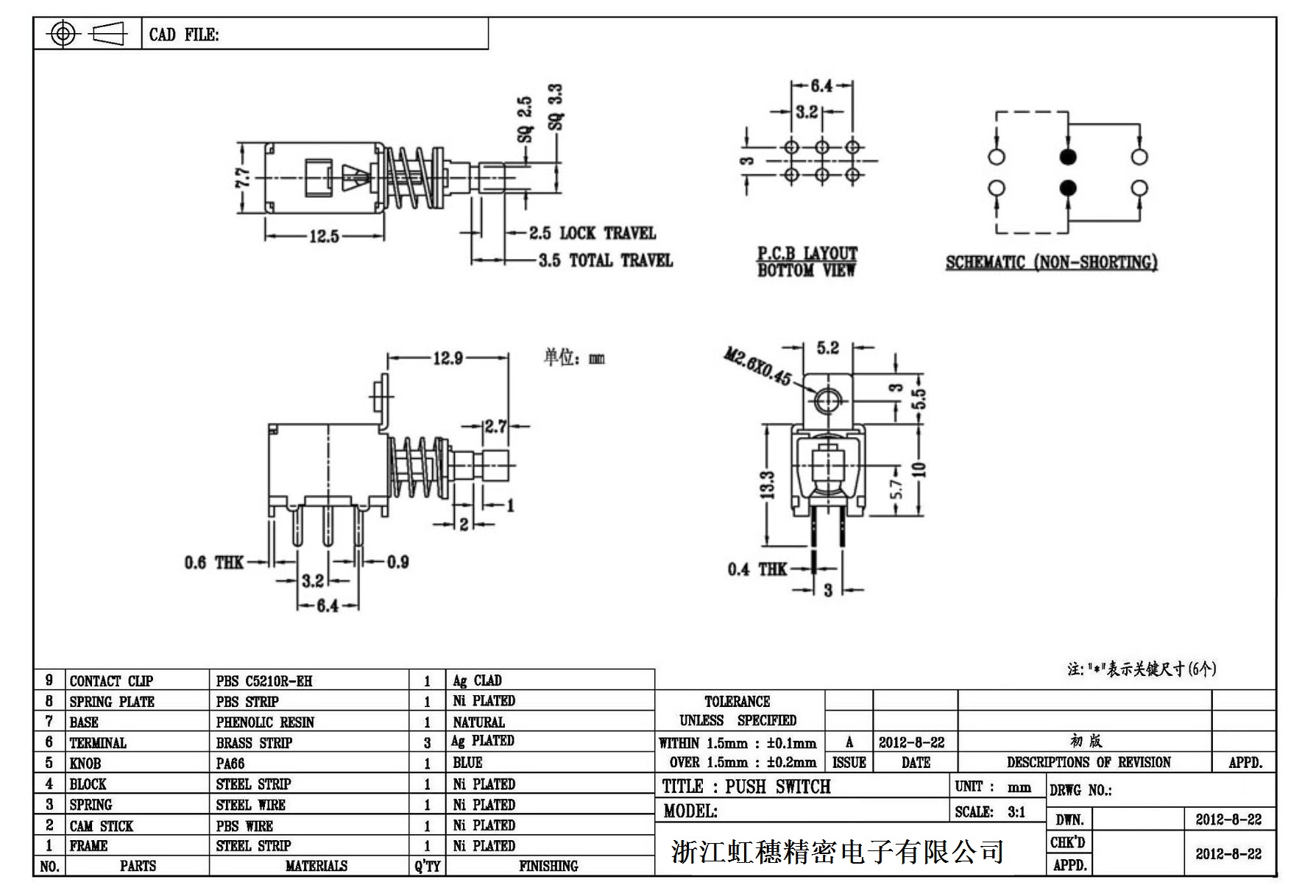 側按直鍵開關技術指標