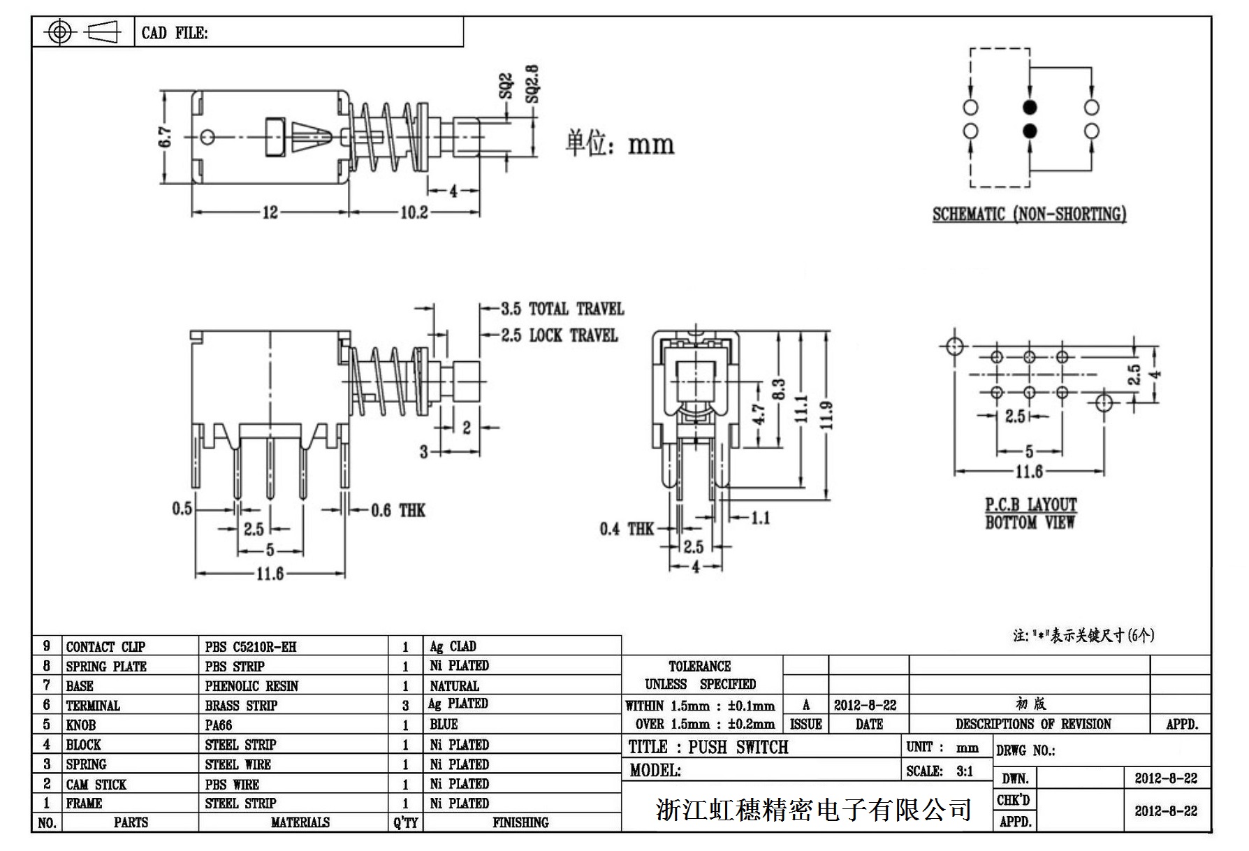 側(cè)按直鍵開(kāi)關(guān)技術(shù)指標(biāo)