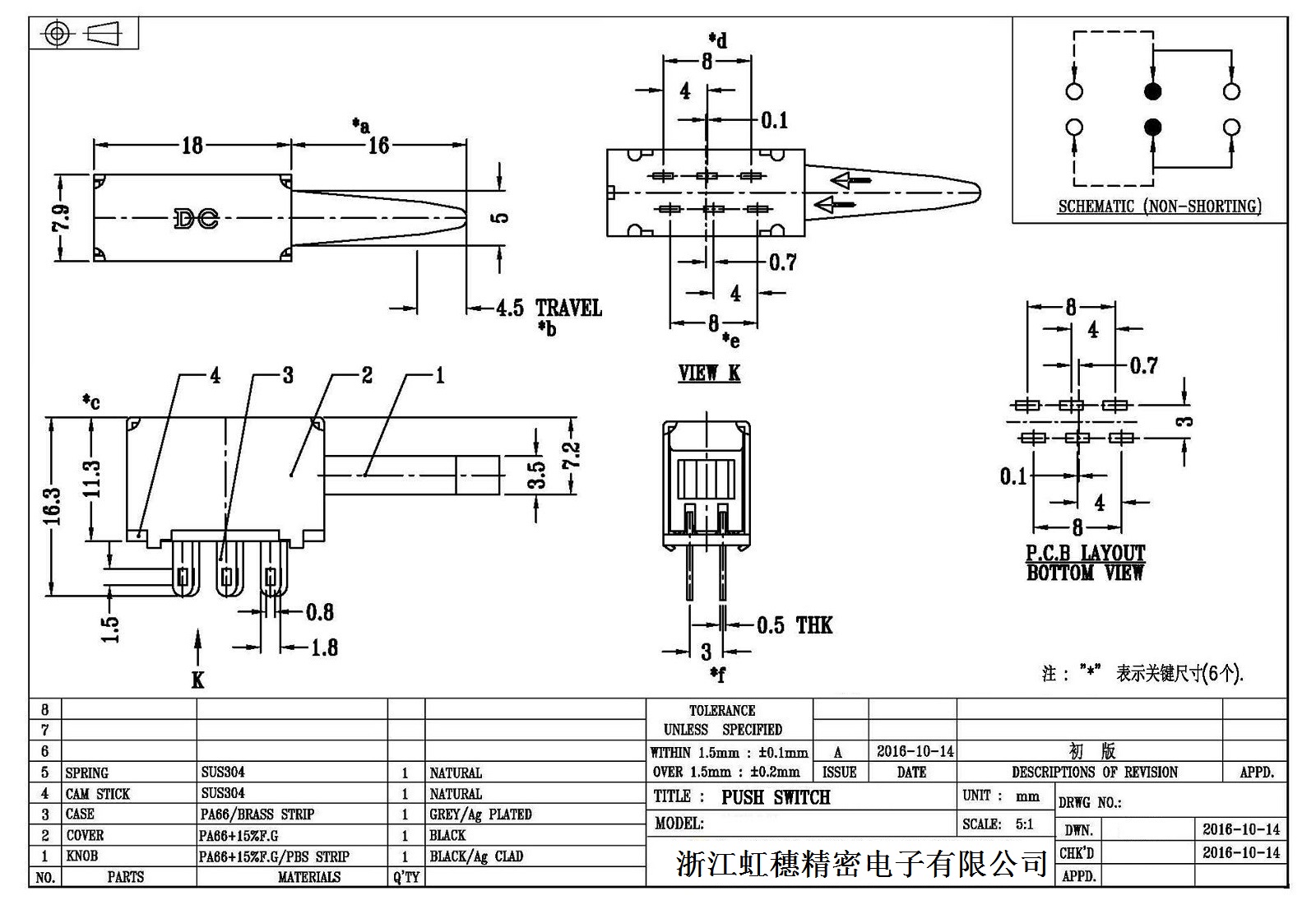 7. Operating force: 160gf can be customized