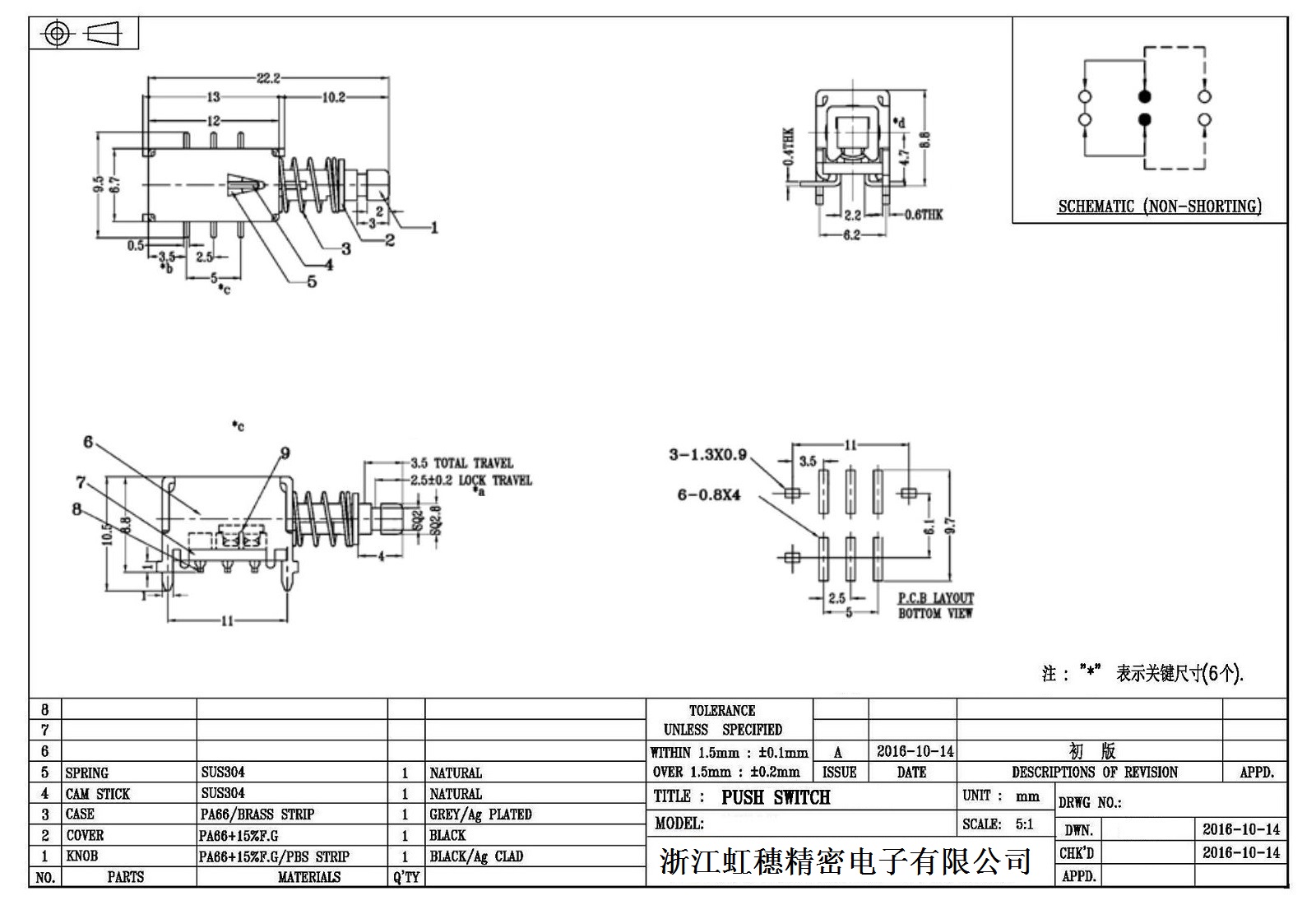 Self-Locking Switch / Puhs Button switch technical indicators