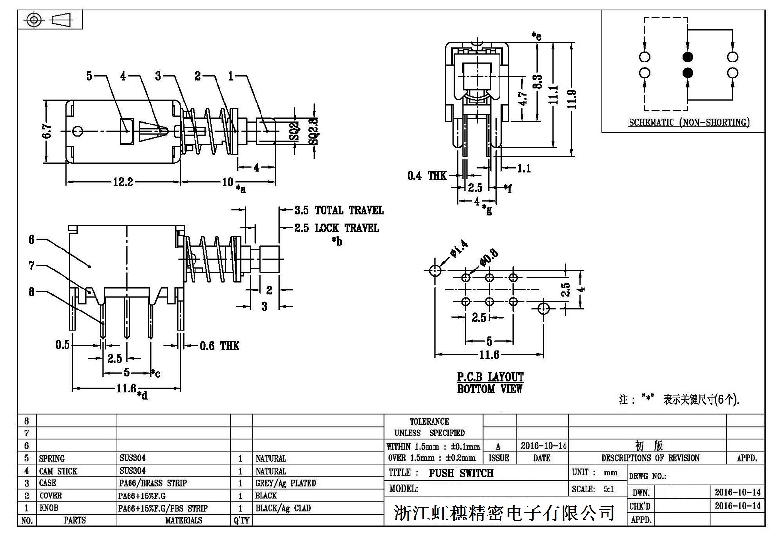 7. Operating force: 160gf can be customized